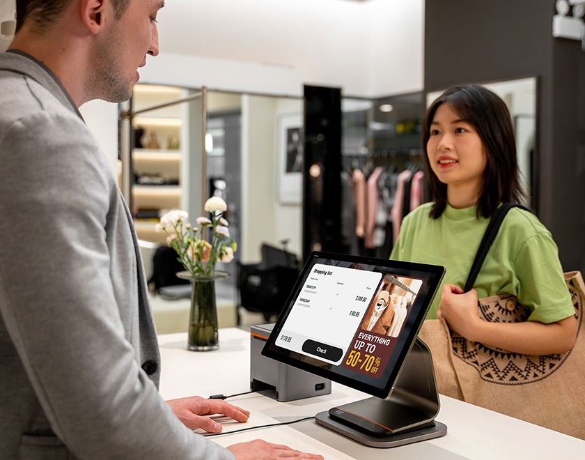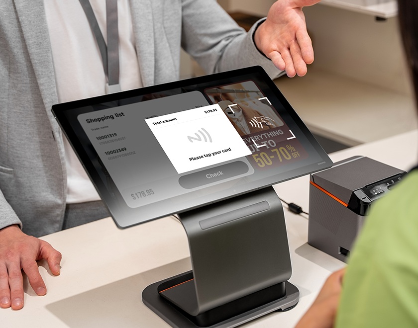 Sunmi T3 Pro -kassan 15,6" näyttö kääntyy vaivattomasti tukevalla jalustalla asiakasnäytöksi - tai voit varustella laitteen erillisellä 10,1" asiakasnäytöllä, joka sisältää NFC-maksusovelluksen (optio). Kassapisteen täydentävät lisävarusteina hankittavat käteiskassalaatikko, kuittitulostin ja viivakoodilukija.