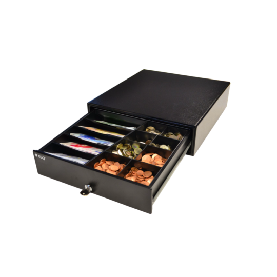 Edullinen ja kestävä rahalaatikko päivittäiseen käyttöön. 8 kolikkopaikkaa ja 5 setelipaikkaa. Solenoidiohjattu avaus RJ-liitännän kautta (kuittitulostimen käynnistyminen avaa kassalaatikon).